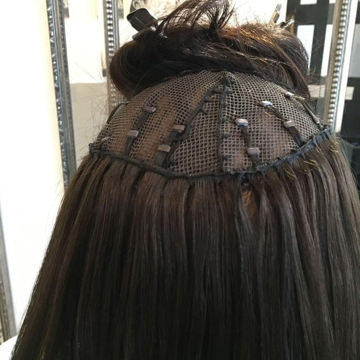 During the process, a lightweight, breathable mesh is gently integrated with your existing hair, creating a secure base for natural or extension hair to be added. The result is full, natural-looking volume that blends perfectly and allows you to live freely — wash, style, and move as usual.